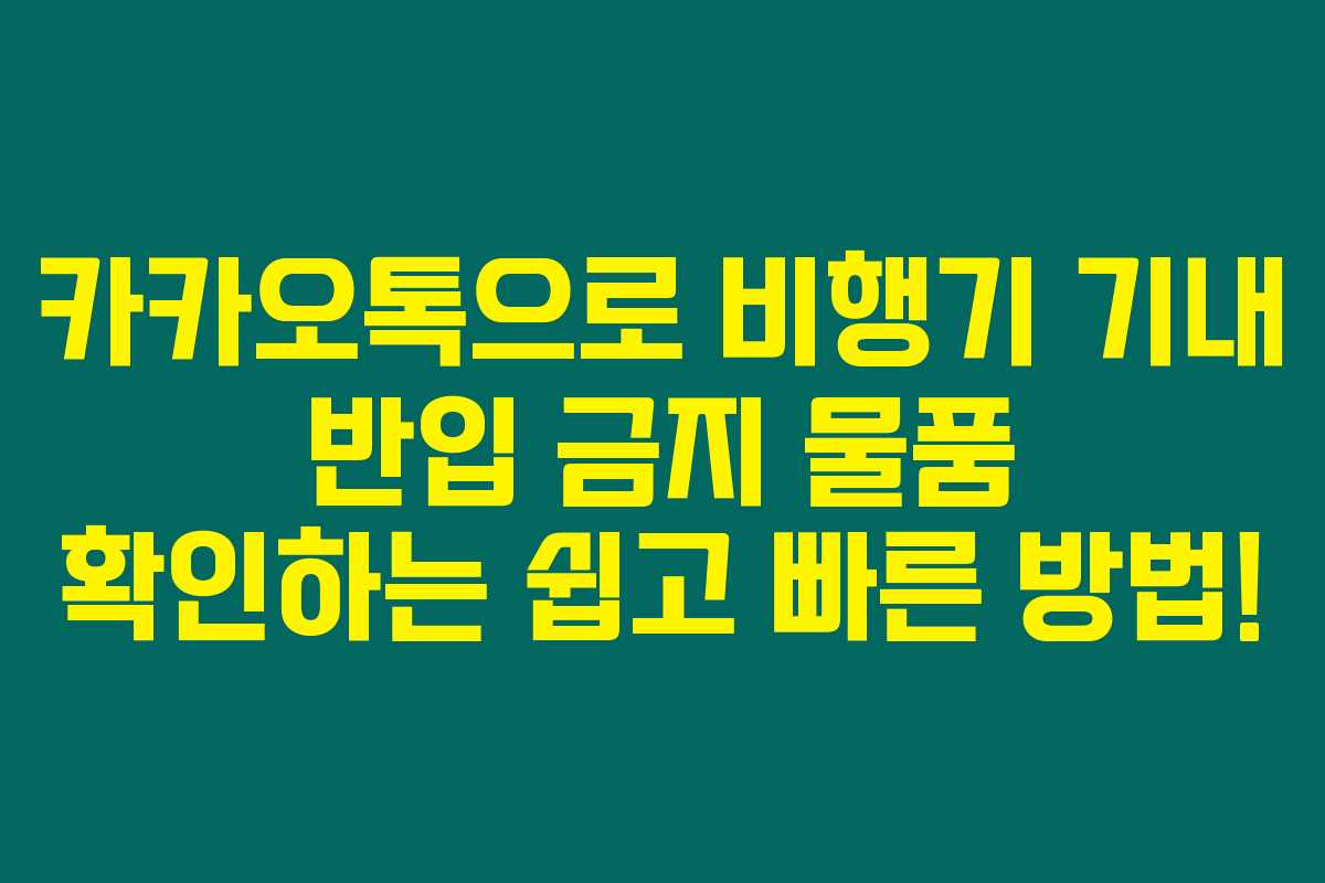 제가 직접 리서치한 바로는 비행기를 자주 이용하지 않는 분들이 기내 반입 금지 물품을 정확히 확인하는 것이 쉽지 않더라고요. 이런 궁금증을 해결하기 위해 오늘은 카카오톡을 통해 간편하게 비행기 기내 반입 금지 물품을 확인할 수 있는 방법을 공유해 보려 해요. 아래를 읽어보시면 이 방법을 통해 짐을 꾸릴 때 더 이상 불안해하지 않게 될 거랍니다.