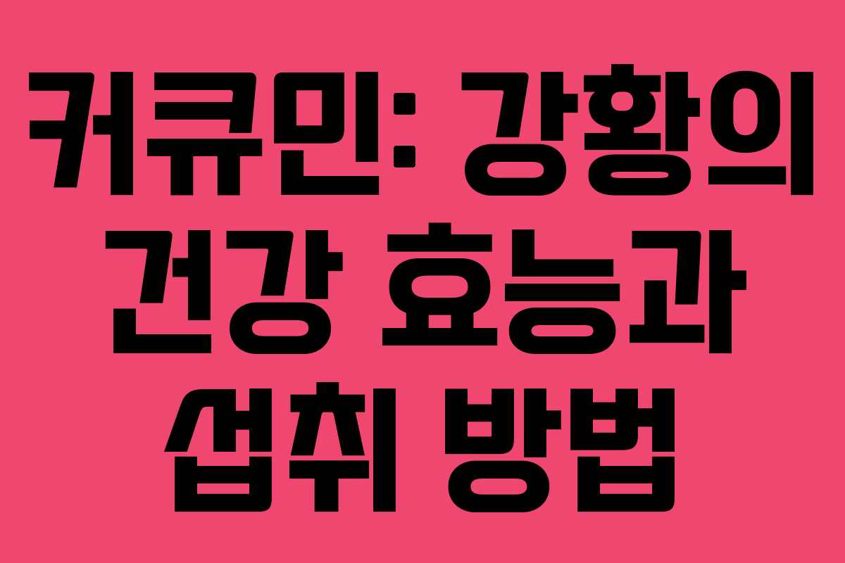 • 식품으로 섭취: 카레나 차 형태로 섭취하고, 다양한 영양소와 함께 먹는 것이 좋습니다.