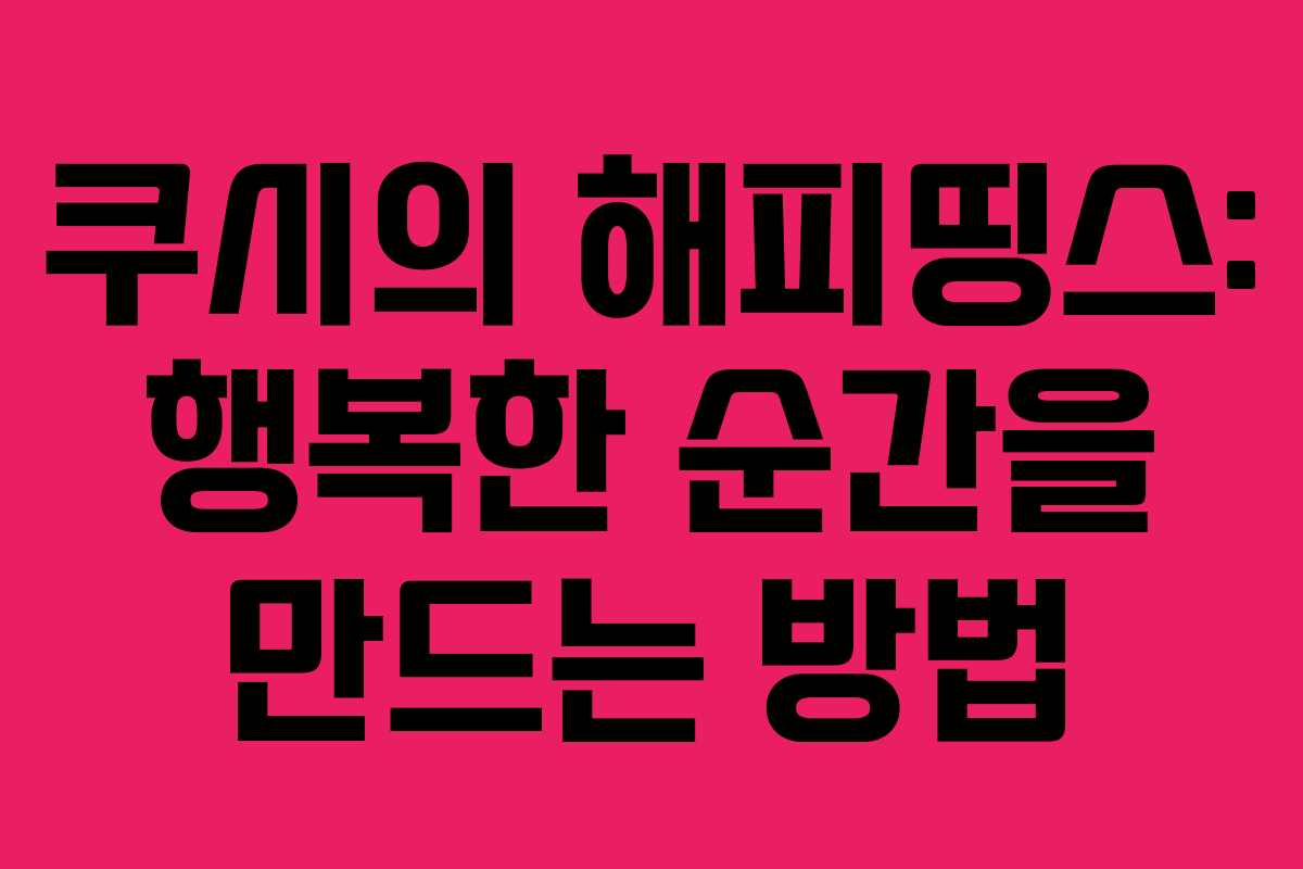 쿠시는 일상 속에서 작은 행복을 느끼고 싶어하는 사람들에게 다양한 아이디어와 제품을 제공하는 브랜드입니다. 이 글에서는 쿠시의 해피띵스가 무엇인지, 어떻게 우리의 일상에 긍정적인 영향을 미치는지 살펴보겠습니다.