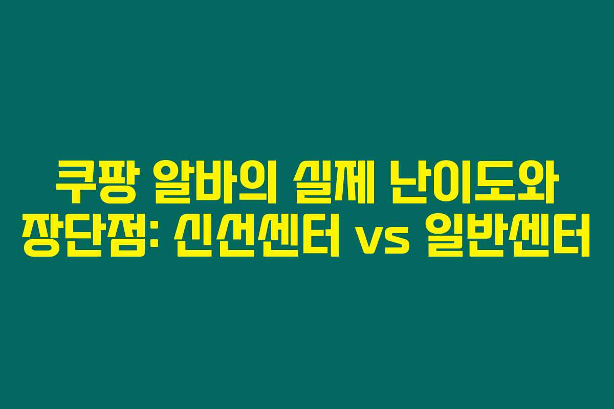 쿠팡 알바의 실제 난이도와 장단점: 신선센터 vs 일반센터