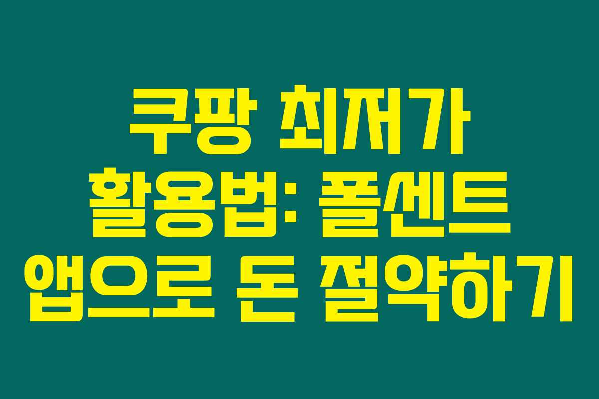 쿠팡 최저가 활용법: 폴센트 앱으로 돈 절약하기