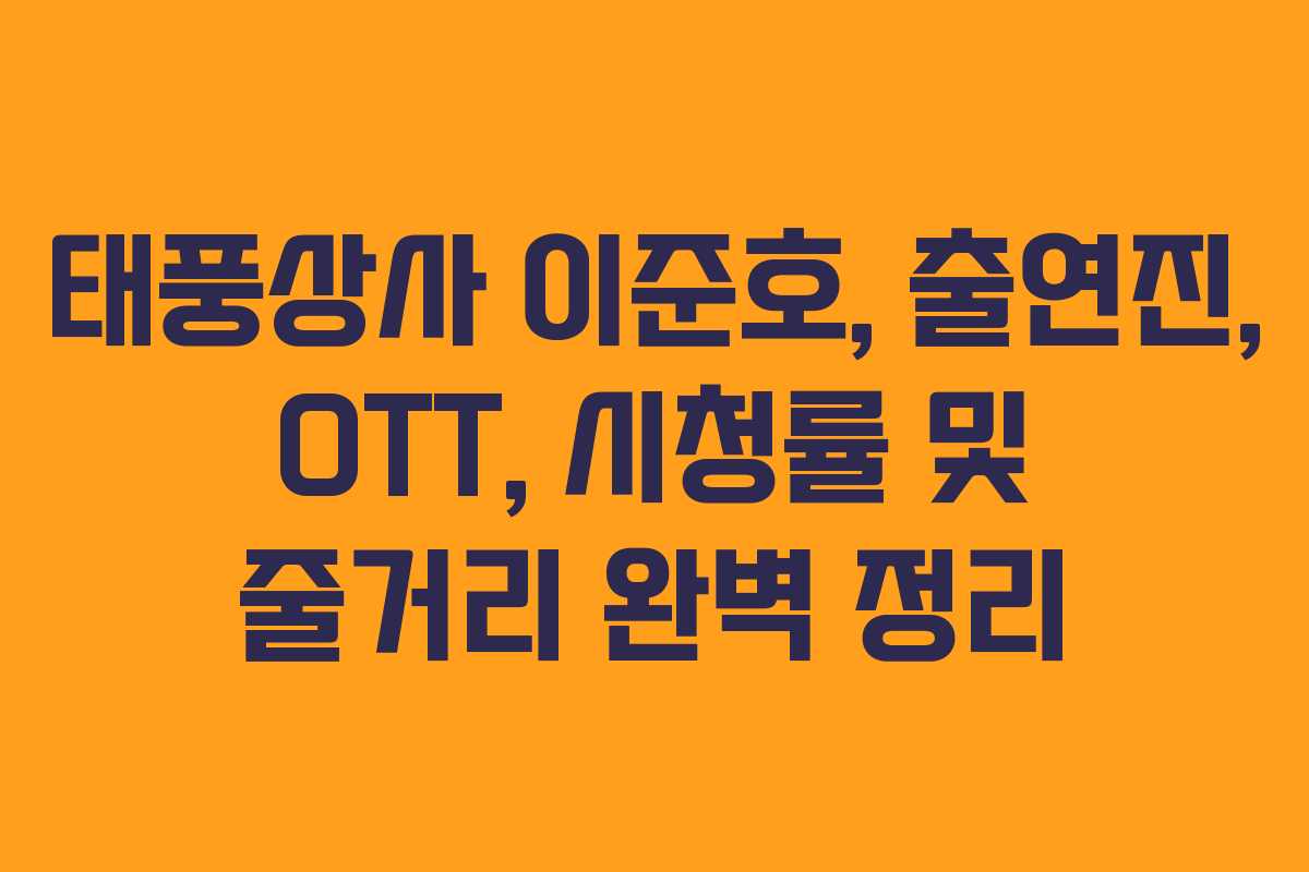 2025년 하반기 tvN의 기대작인 『태풍상사』가 드디어 첫 방송을 시작했습니다. 이 드라마는 많은 이들이 궁금해하는 몇 부작인지, 출연진은 누구인지, 그리고 OTT에서 어떻게 볼 수 있는지에 대한 정보를 제공합니다.
