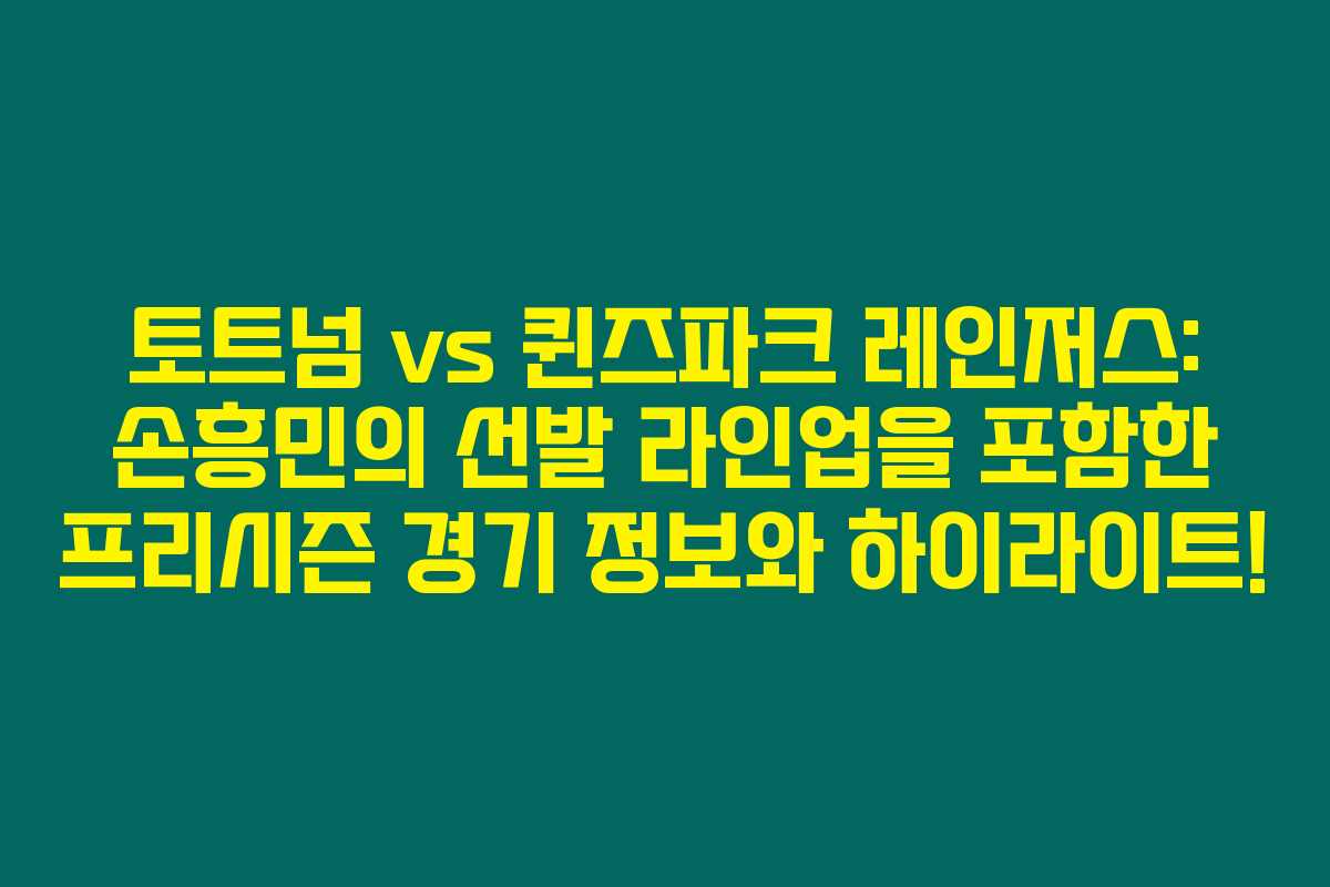 2024년 7월 20일 토트넘 홋스퍼 FC와 퀸즈파크 레인저스 FC의 친선경기는 축구 팬들에게 놓칠 수 없는 특별한 이벤트가 될 거예요. 특히, 손흥민 선수가 선발 출전 예정이라는 소식에 많은 팬들이 기대하고 있죠. 아래를 읽어보시면 이 경기에 대한 모든 정보뿐만 아니라 치열한 경기를 놓치지 않기 위한 방법까지 알려드릴게요!