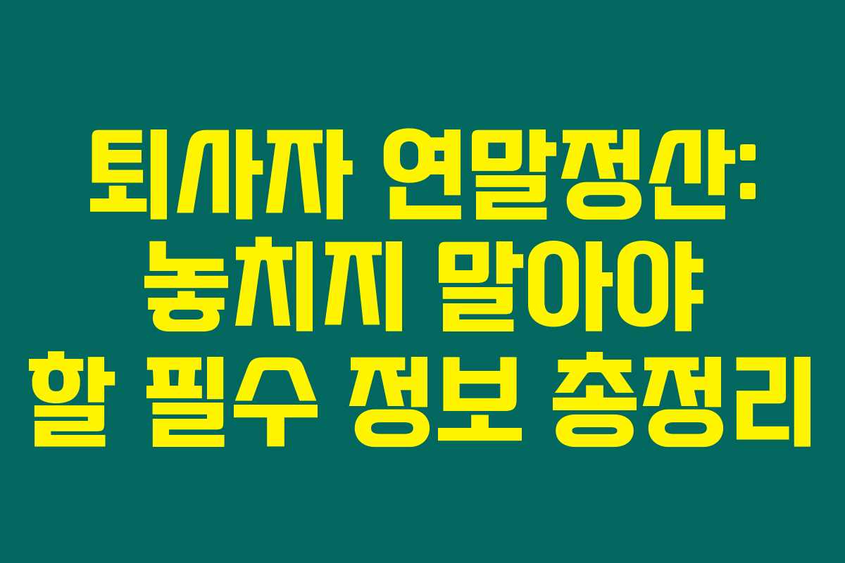 퇴사자 연말정산에 대해 제가 직접 경험해본 결과로는, 연말정산 과정이 생각보다 복잡할 수 있지만, 미리 준비한다면 손쉽게 마스터할 수 있다는 사실입니다. 퇴사 후의 연말정산에서 놓칠 수 있는 여러 혜택과 잘 알아두어야 할 정보를 등 여러분과 함께 공유하려고 해요. 아래를 읽어보시면, 퇴사자가 꼭 알아야 할 연말정산의 시기, 방법, 환급 절차, 필요한 서류를 꼼꼼히 정리했습니다.