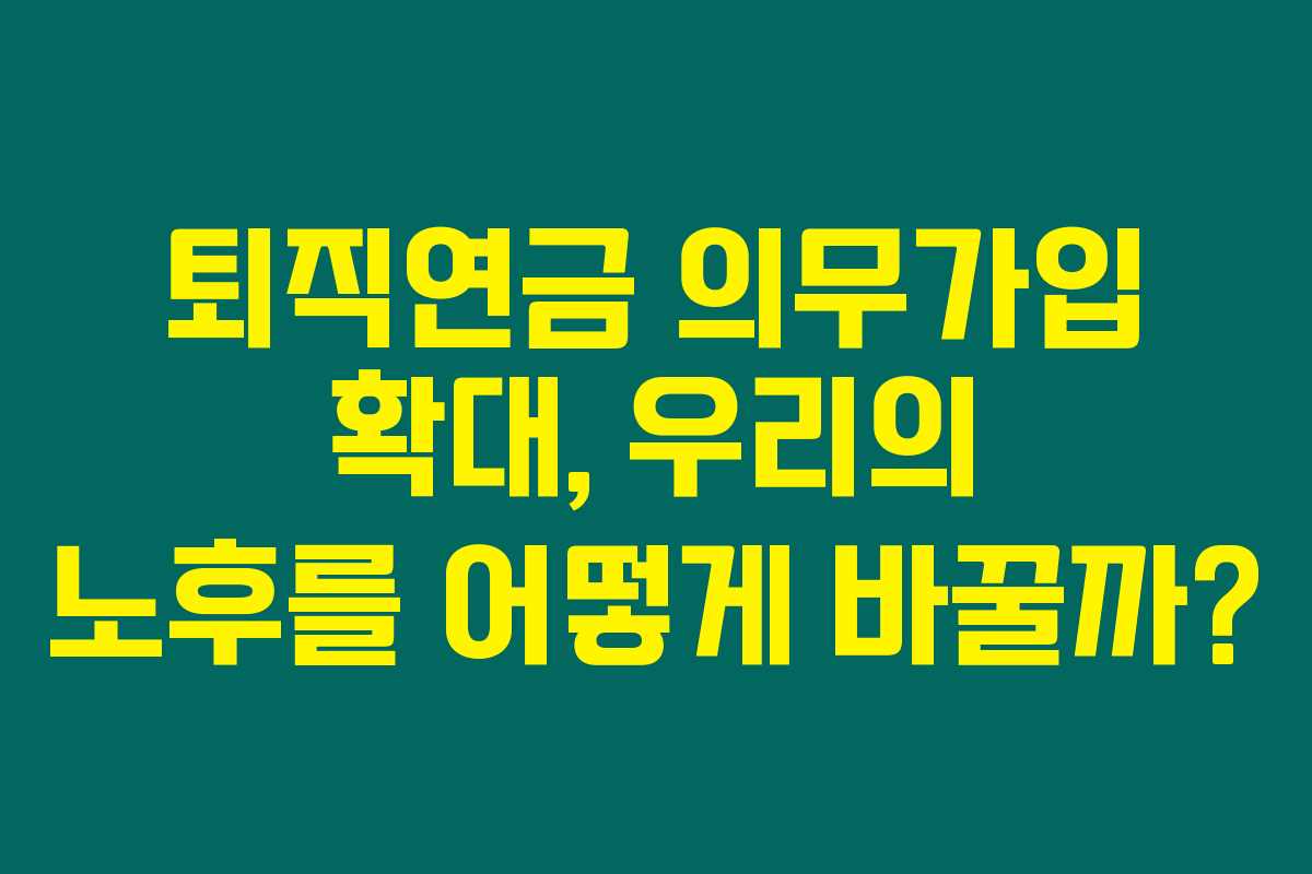 제가 직접 경험해본 바로는, 퇴직연금 의무가입이 2016년부터 확대된 이후, 많은 근로자들이 자신의 노후 준비에 대해 진지하게 고민하게 되었다는 것을 느꼈어요. 이 글에서는 퇴직연금 제도가 우리 생활에 어떤 영향을 미치는지를 다뤄보려고 합니다. 아래를 읽어보시면 퇴직연금의 의무화가 어떤 의미를 가지며, 근로자와 기업 모두에게 어떤 방향으로 작용할지에 대한 통찰을 얻으실 수 있을 거예요.