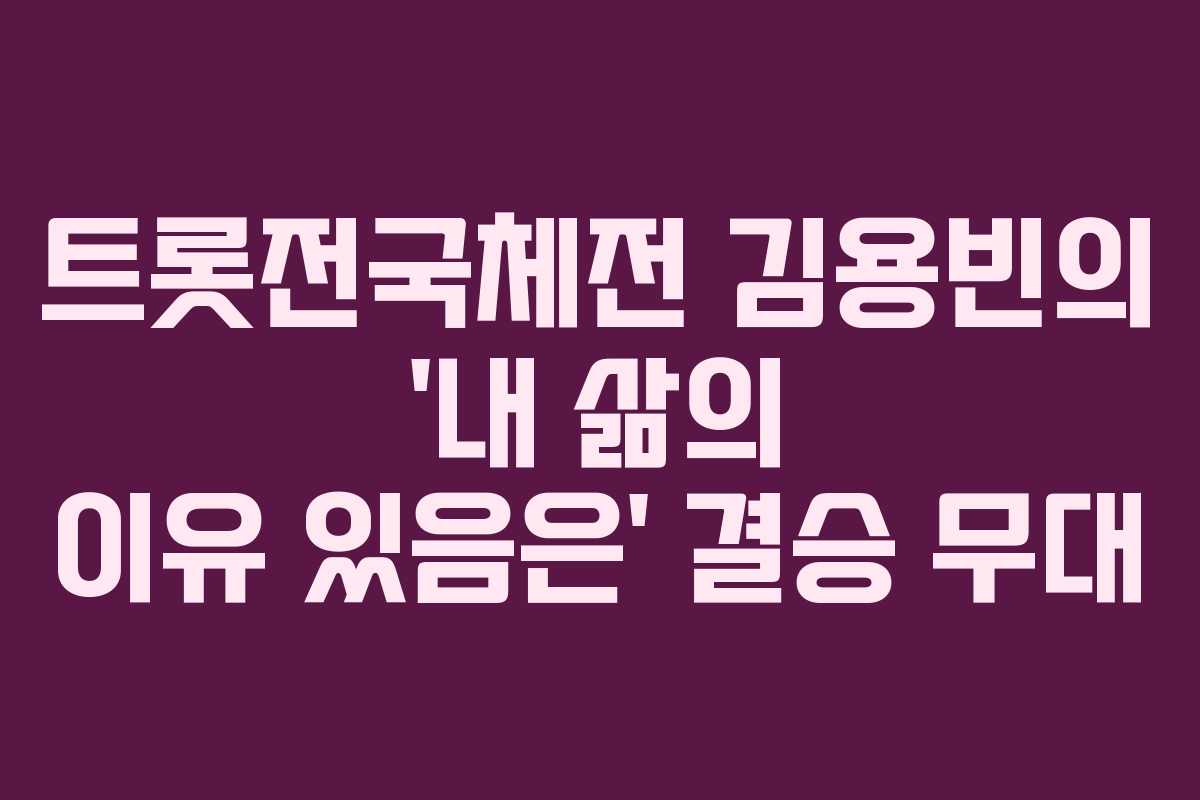 트롯전국체전에서 김용빈 선수가 부른 ‘내 삶의 이유 있음은’은 원곡자 이미자의 명곡으로, 결승 2차 시기에서 그의 뛰어난 실력을 다시 한번 확인할 수 있는 기회가 되었습니다. 이번 글에서는 김용빈의 무대와 그 성과를 자세히 살펴보겠습니다.
