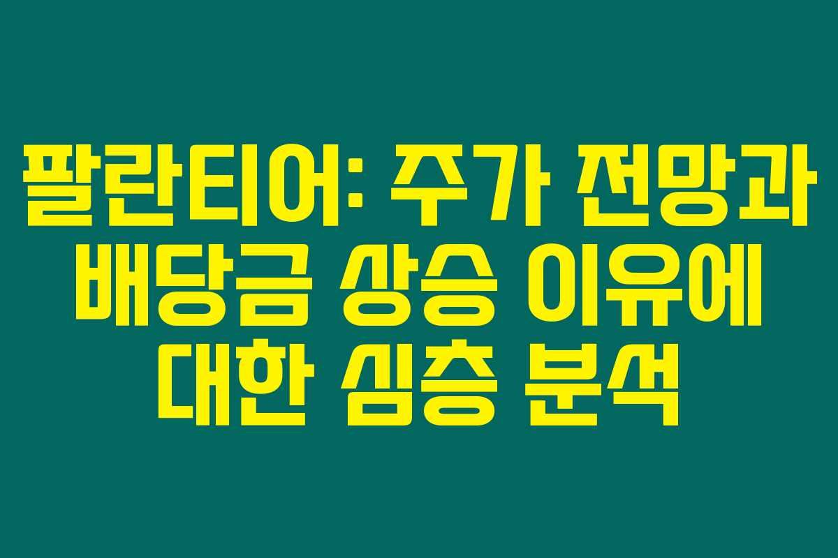 제가 직접 리서치한 바로는, 팔란티어의 주가는 최근 몇 년동안 급격히 상승세를 타고 있고, 이는 인공지능(AI) 산업의 성장과 정부 및 기업 고객의 확대가 주된 요인으로 작용하고 있습니다. 아래를 읽어보시면, 팔란티어의 주가 전망, 배당금 현황 및 상승 이유에 대해 자세히 알아보시게 될 것입니다.