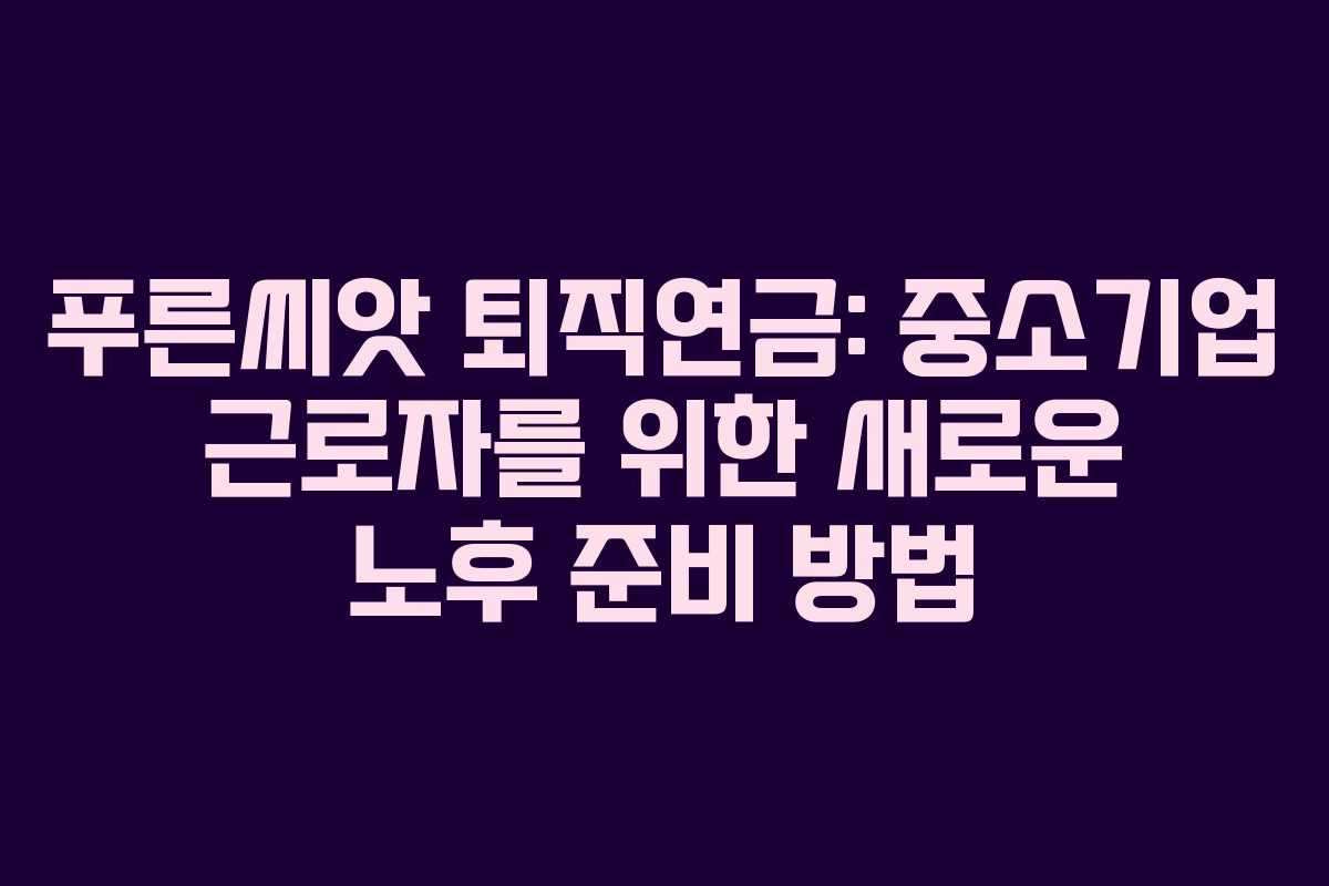 푸른씨앗 퇴직연금: 중소기업 근로자를 위한 새로운 노후 준비 방법