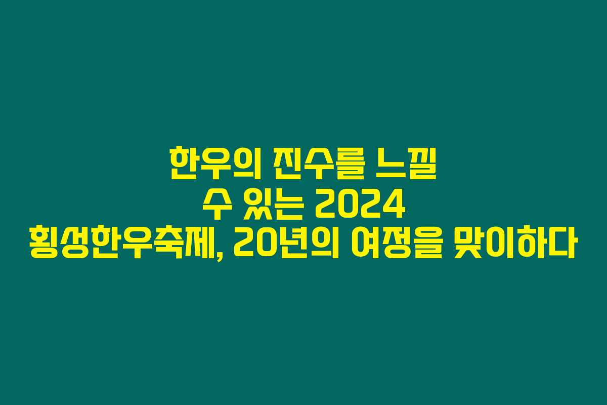 2024년 횡성한우축제가 드디어 20회를 맞이합니다! 이 축제는 단순한 먹거리가 아니라, 한우와 함께 나누는 문화와 즐거움을 만끽할 수 있는 자리입니다. 아래를 읽어보시면, 다채로운 프로그램과 그 속에서 느낄 수 있는 한우의 우수성에 대해 알게 되실 거예요.