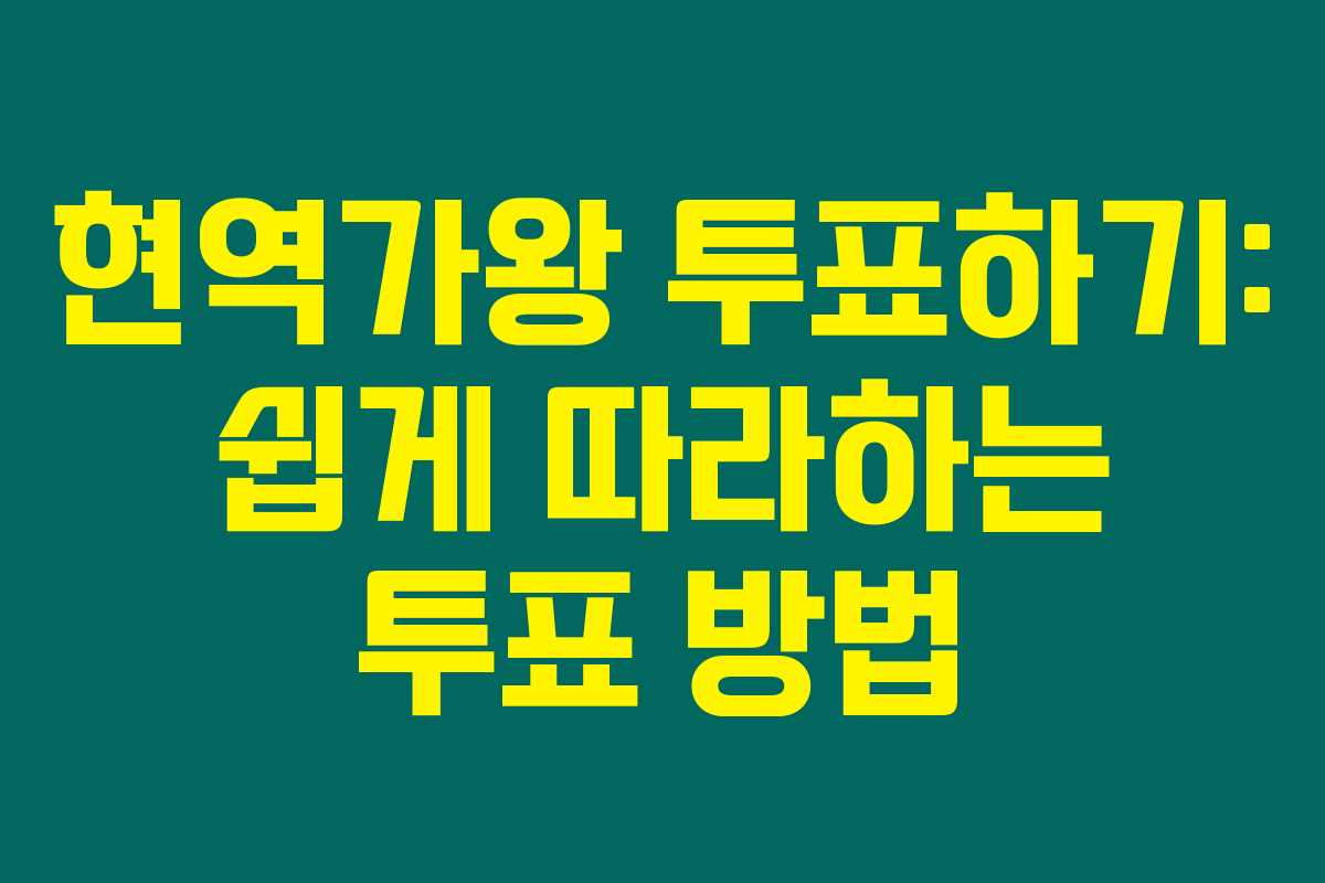 현역가왕 결승전이 다가오고 있어요! 많은 분들이 소중한 한 표로 응원하고 싶어 하는데, 투표 방법이 복잡하게 느껴지시죠? 아래를 읽어보시면 쉽고 간단하게 현역가왕 투표를 하는 방법을 알 수 있어요.