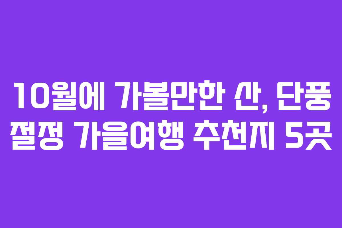 가을의 정수를 느낄 수 있는 10월, 단풍이 아름다운 산들을 소개합니다. 이 시기에 방문하면 환상적인 자연 경관을 만끽할 수 있습니다.