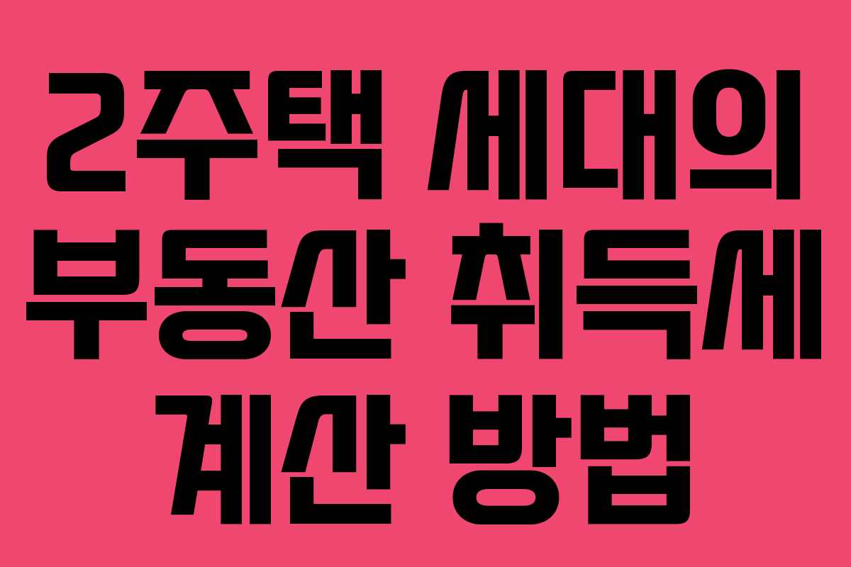 2주택 세대가 주택을 추가로 매수할 경우 부동산 취득세는 여러 가지 요소에 따라 달라집니다. 특히, 신규로 매수하려는 주택이 조정 지역에 위치하는지 여부와 전용 면적이 85제곱미터 이하인지 초과인지에 따라 세금 계산 방식이 달라집니다.