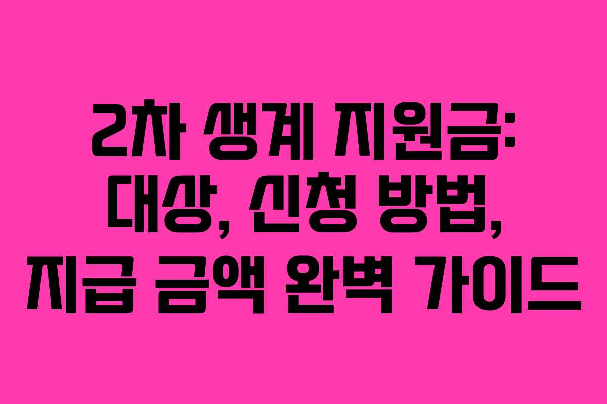 2차 생계 지원금: 대상, 신청 방법, 지급 금액 완벽 가이드