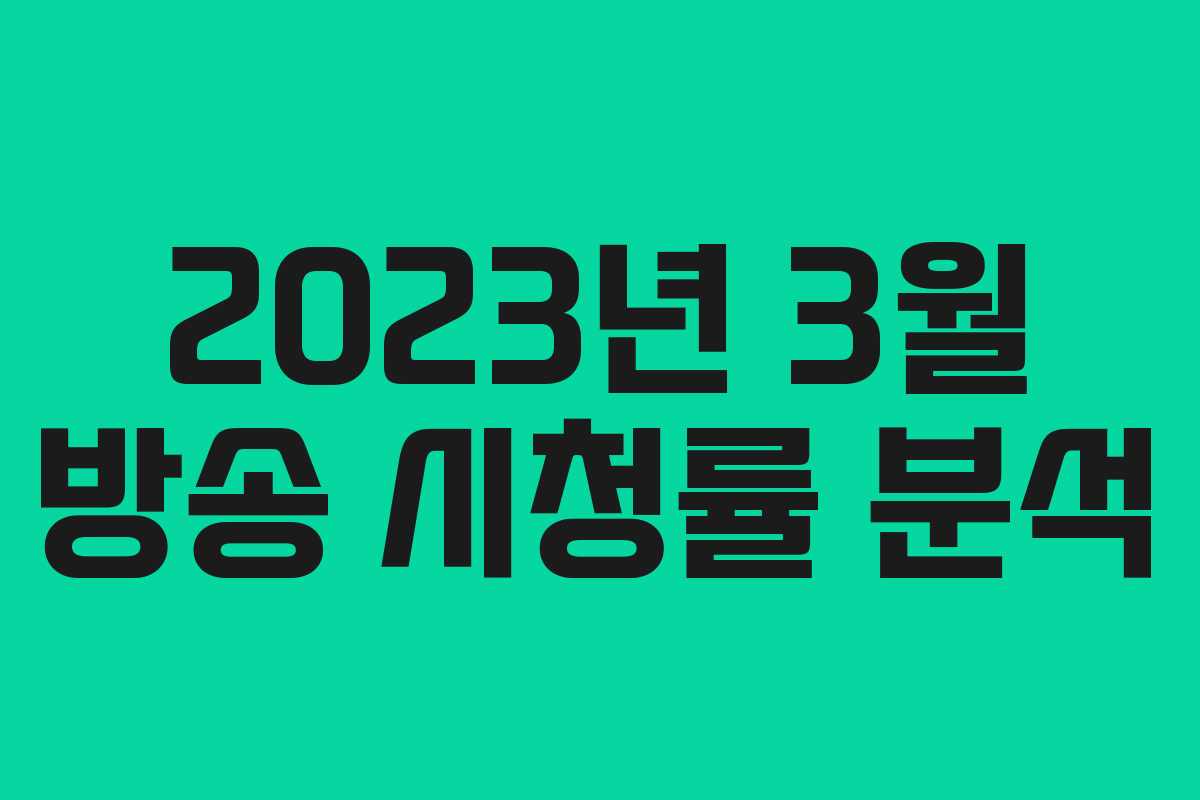 이번 포스팅에서는 2023년 3월 첫째 주부터 셋째 주까지의 방송 시청률을 분석하여, 각각의 방송 매체별로 어떤 프로그램이 인기를 끌었는지 살펴보겠습니다. 공중파, 종편, 케이블의 평균 시청률을 비교하여 각 카테고리에서 가장 높은 순위를 기록한 프로그램도 확인해보겠습니다.