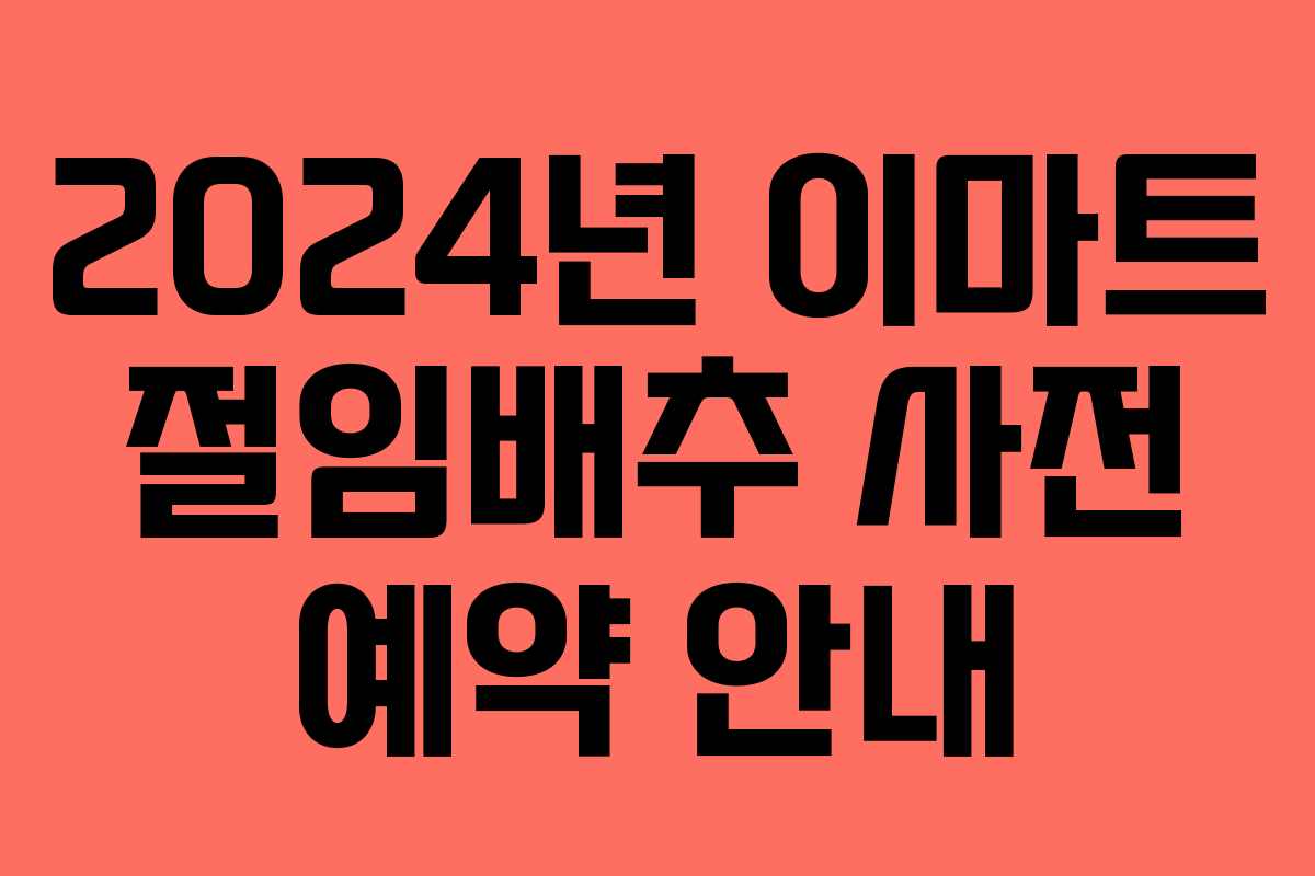 2024년 이마트 절임배추 사전 예약은 10월 25일부터 10월 31일까지 진행됩니다. 이 기간 동안 예약이 가능하며, 총 7만 박스의 한정 물량이 소진될 수 있으니 서두르시는 것이 좋습니다.