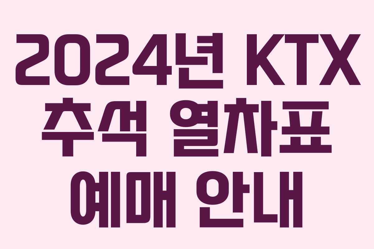 2024년 KTX 추석 열차표 예매는 2024년 8월 19일(월)부터 8월 22일(목)까지 진행됩니다. 각 대상자별로 예매 일정이 다르니 확인이 필요합니다.