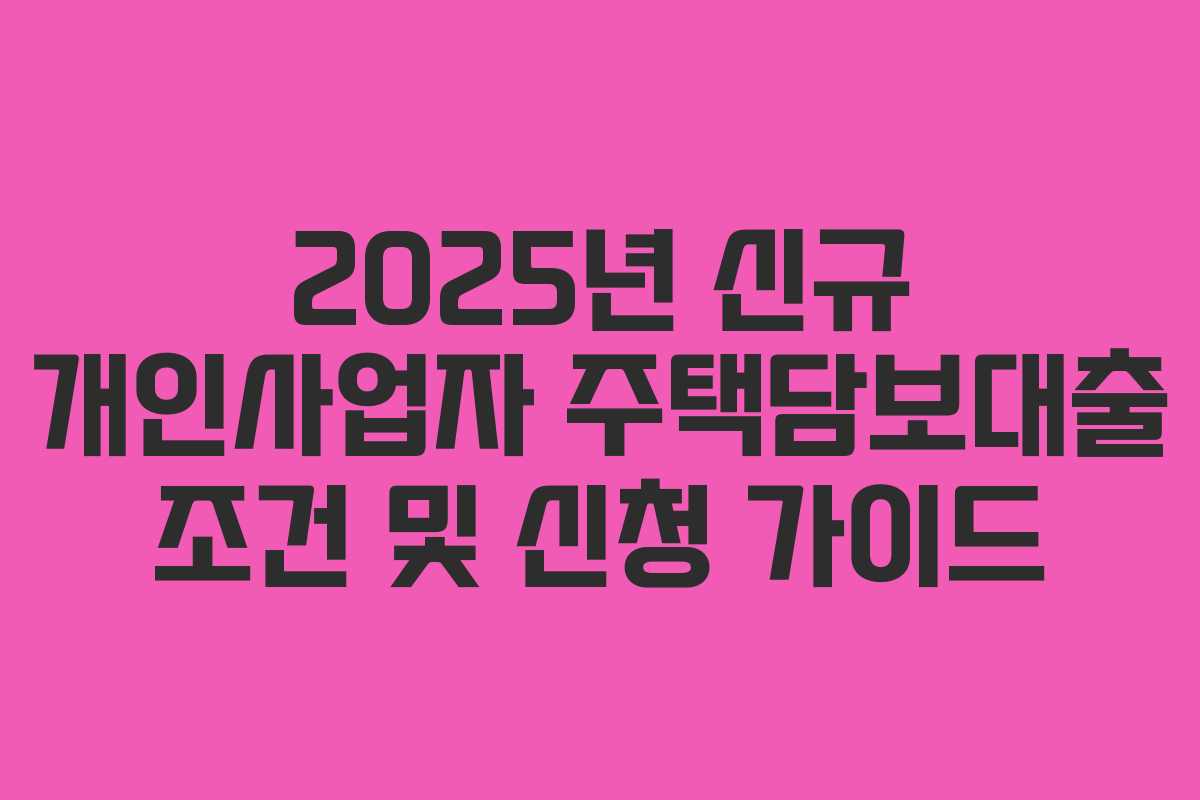 신규 개인사업자는 사업 시작 시 초기 자금 마련을 위해 대출을 고려하게 됩니다. 하지만 대출 조건이 일반 직장인과는 다를 수 있어, 정확한 정보가 필요합니다. 본 가이드는 2025년 신규 개인사업자에게 적용될 주택담보대출 조건, 신청 방법, 필요한 서류 등을 자세히 안내합니다.