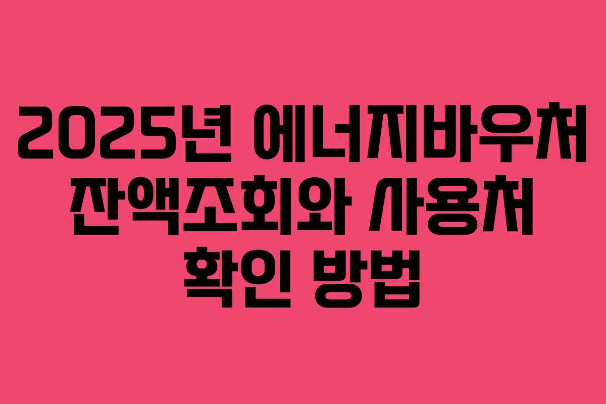 2025년 에너지바우처의 잔액 조회 및 사용처를 확인하는 방법에 대해 자세히 안내드립니다. 해당 정보를 통해 에너지바우처를 효율적으로 활용할 수 있습니다.