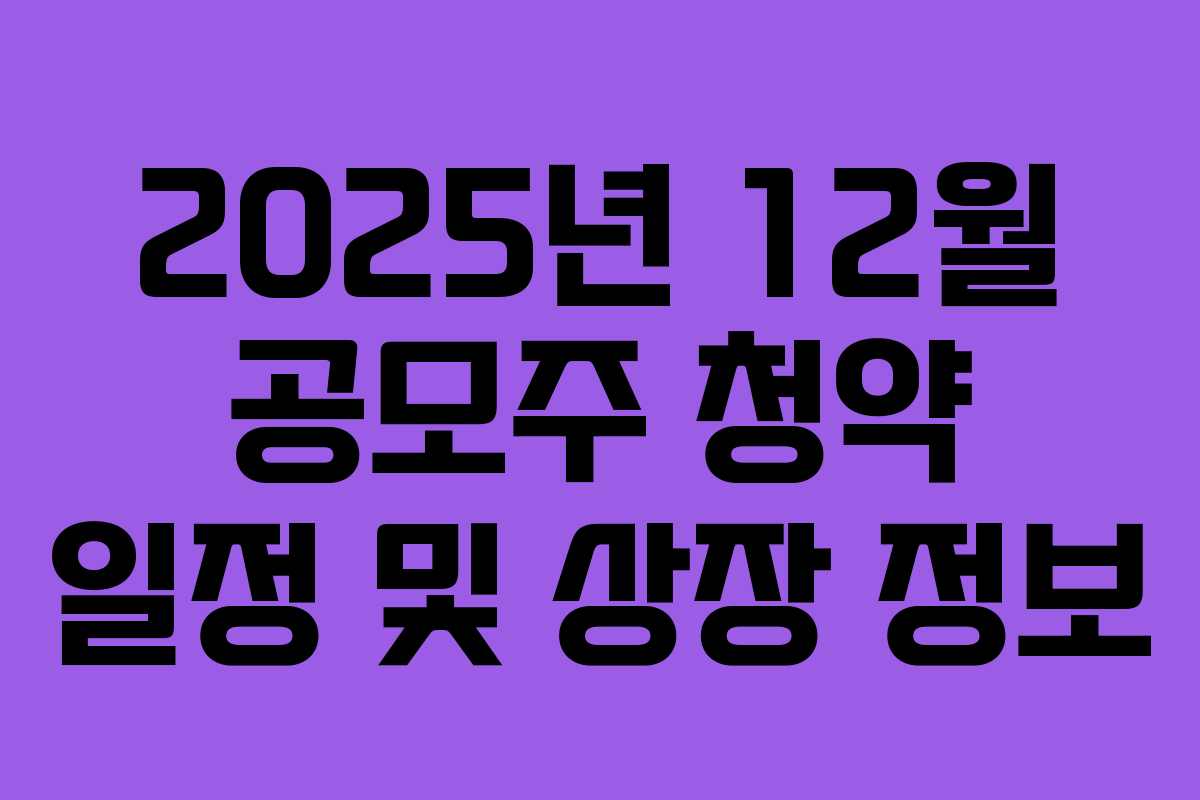 2025년 12월이 다가오면서 공모주 시장이 활기를 띠고 있습니다. 11월 동안 수익을 올린 투자자들이 많아, 12월에도 기대감을 높이고 있습니다. 이번 글에서는 12월 신규 공모주 청약 일정과 상장 일정, 그리고 관련 정보를 정리해 보겠습니다.