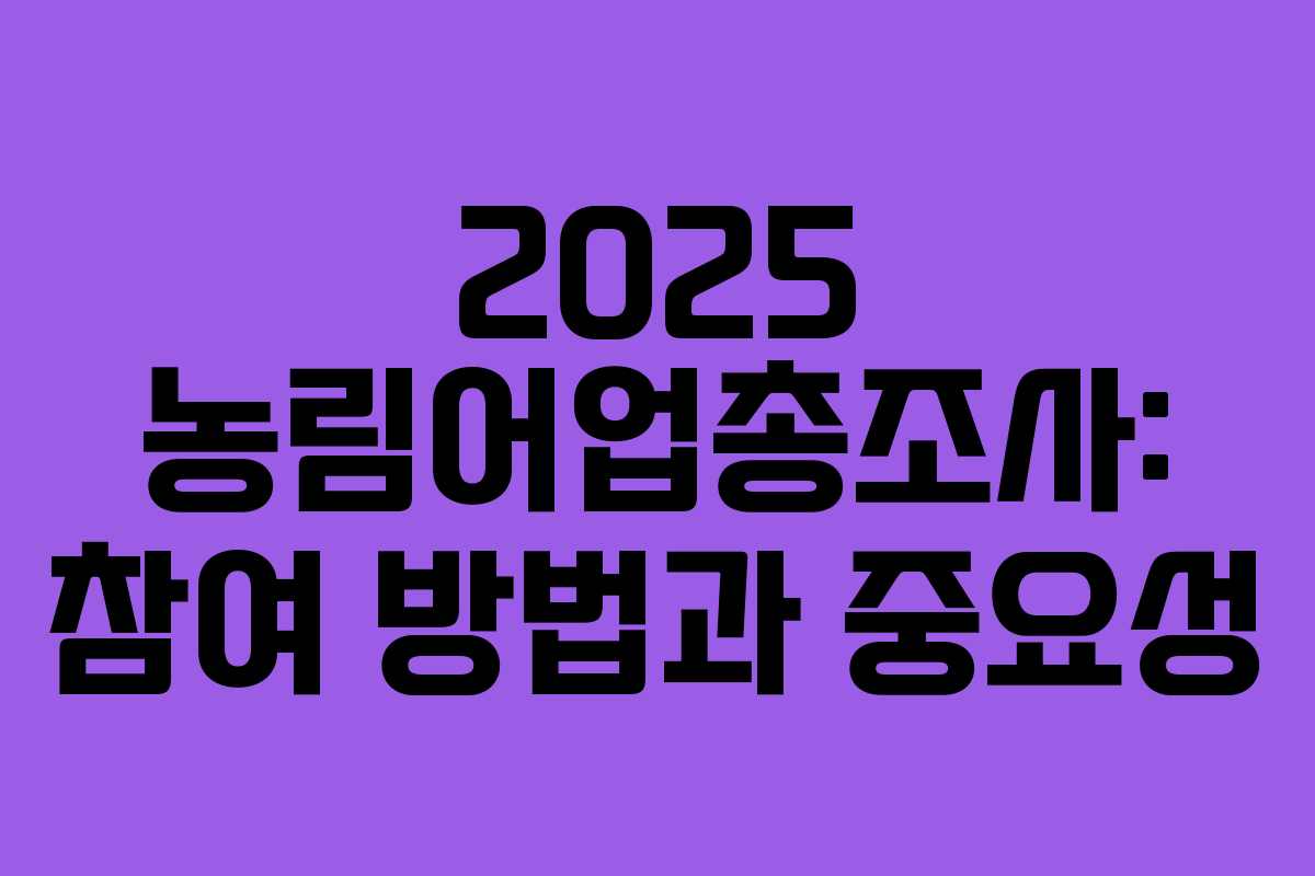 2025년 농림어업총조사가 다가오면서 많은 농업인, 임업인, 어업인 분들이 관련 정보에 대해 궁금해할 것입니다. 이번 포스팅에서는 조사 기간, 참여 방법, 미참여 시 불이익 등 중요한 내용을 종합적으로 정리하였습니다.