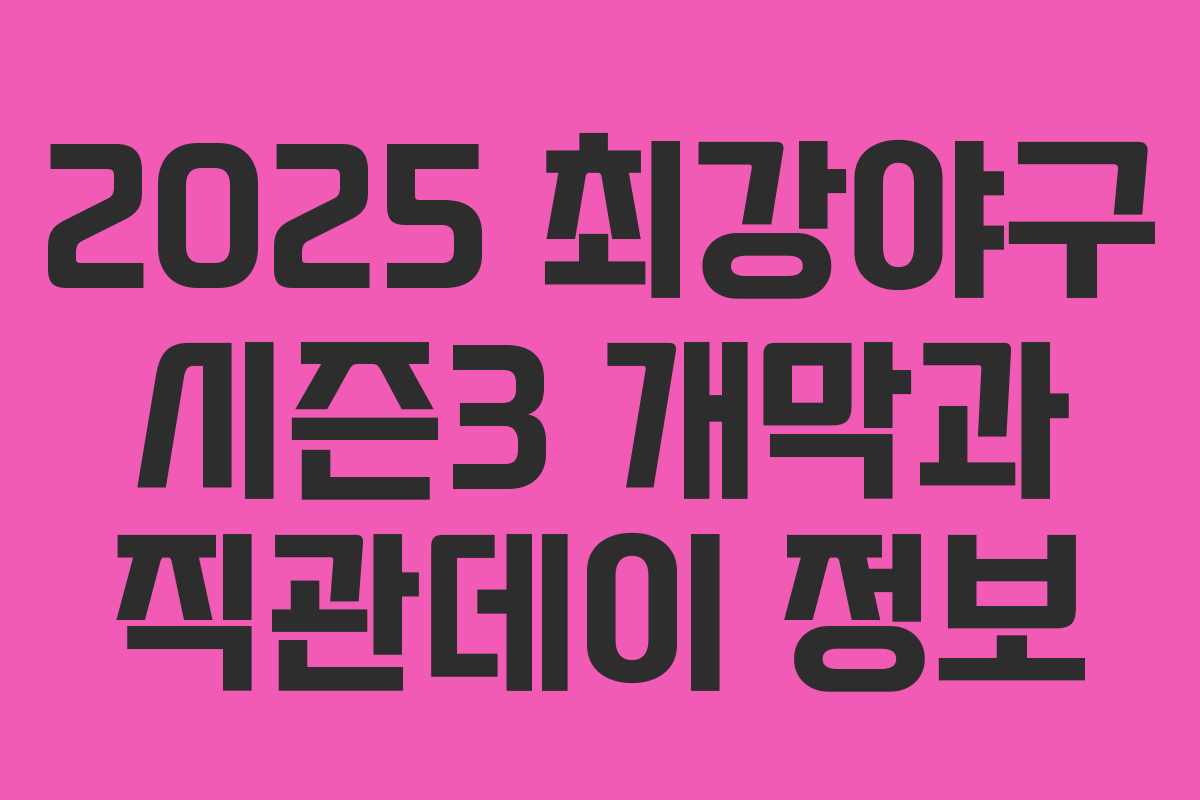 2025 최강야구 시즌3 개막과 직관데이 정보