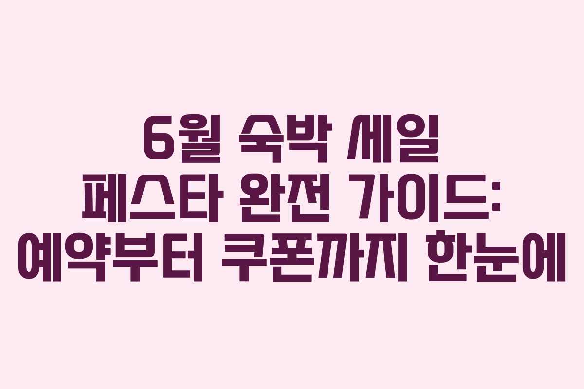 6월 숙박 세일 페스타 완전 가이드: 예약부터 쿠폰까지 한눈에