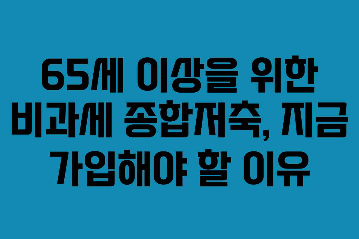 65세 이상의 부모님이 있으신가요? 그렇다면 비과세 종합저축에 대해 주목해 보셔야 합니다. 이 투자 상품은 이자와 배당소득에 대해 세금을 부과하지 않기 때문에, 안정적인 투자처로 각광받고 있습니다. 특히 올해 중에 가입하지 않으면 이후에는 혜택을 받기 어려워지므로, 꼭 알아두셔야 할 중요한 정보입니다.