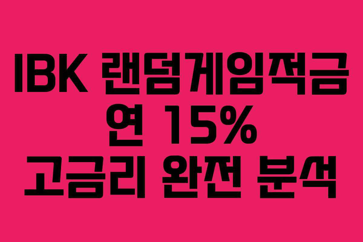 IBK 기업은행의 ‘랜덤게임적금’은 최근 고금리 시대에 많은 관심을 받고 있는 금융 상품입니다. 이 상품은 연 15%라는 높은 금리를 제공하며, 저축의 재미를 더한 독특한 방식으로 주목받고 있습니다. 이번 글에서는 이 상품의 매력, 가입 조건, 미션 및 전략까지 자세히 살펴보겠습니다.