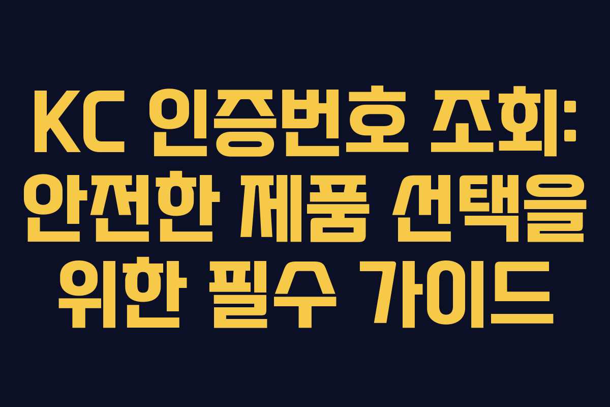 KC 인증은 전기용품, 생활용품, 어린이제품의 안전성을 보증하는 제도로, 소비자가 안전한 제품을 선택하는 데 중요한 역할을 합니다. 이 글에서는 KC 인증번호 조회 방법과 그 중요성에 대해 알아보겠습니다.