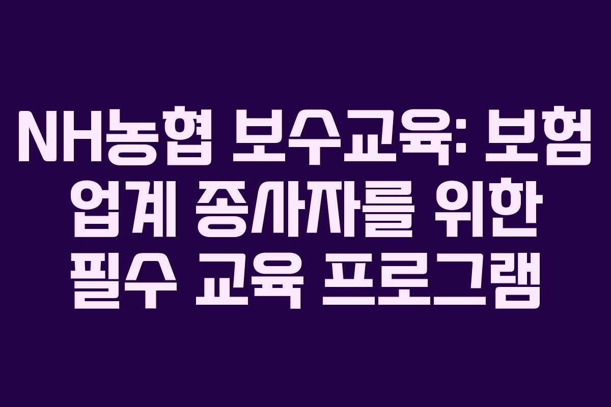 NH농협 보수교육은 보험 업계에서 자격을 계속 유지하기 위한 중요한 절차로, 직원 개인의 커리어 발전에도 기여합니다.